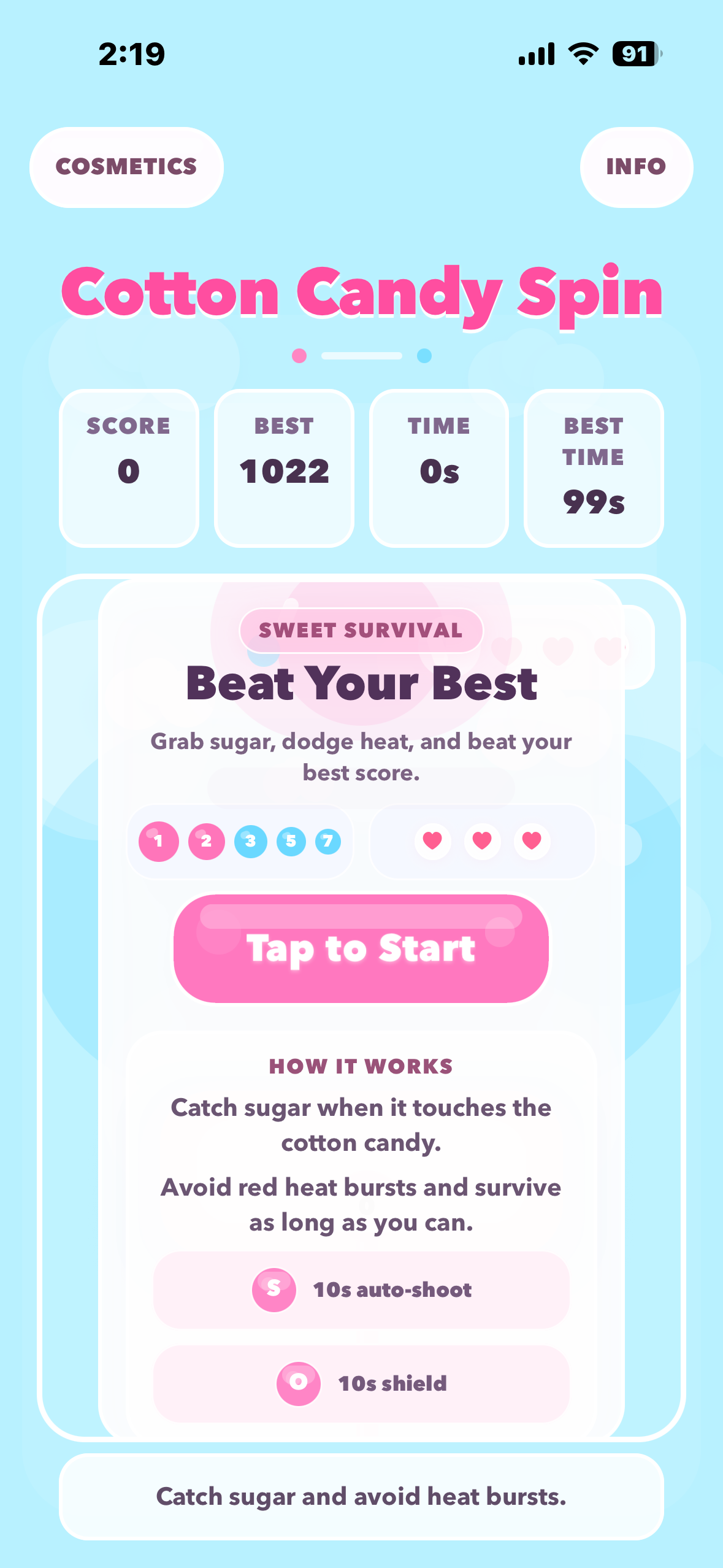 Cotton Candy Spin turns a simple drag-and-catch idea into a run that feels readable, reactive, and energetic. The rules are easy to understand quickly, but strong runs depend on positioning, survival pressure, and knowing when to lean on short power-ups.